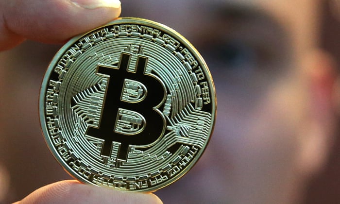 A Bitcoin cryptocurrency souvenir coin. Bitcoin’s price is up 600% over the past 12 months Photograph: A